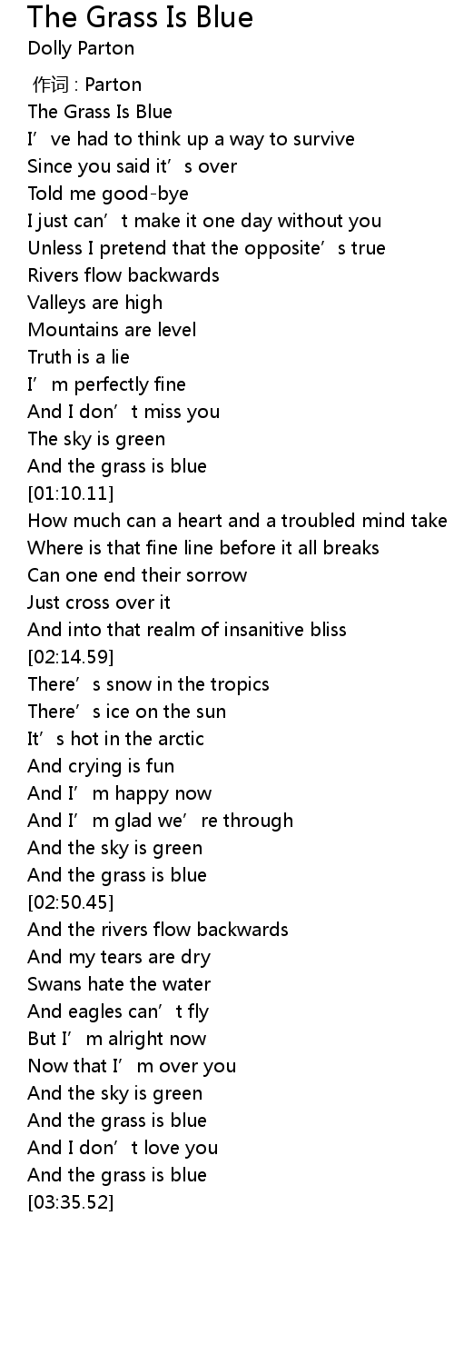 The Grass Is Blue Lyrics ... | 500x1480 px